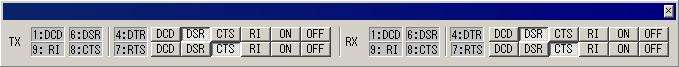 TX-INの行とRX-INの行がそれぞれ送信側COMポートから入力した制御線状態と受信側COMポートから入力した制御線状態です。